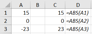 - =ABS(A1)