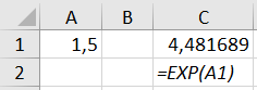 - =EXP(A1)