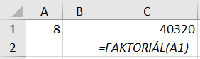 - =FAKTORIÁL(A1)