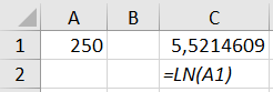 - =LN(A1)