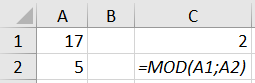 - =MOD(A1;A2)