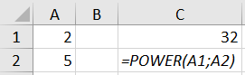- =POWER(A1;A2)