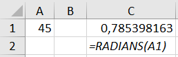 - =RADIANS(A1)