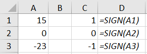 - =SIGN(A1)